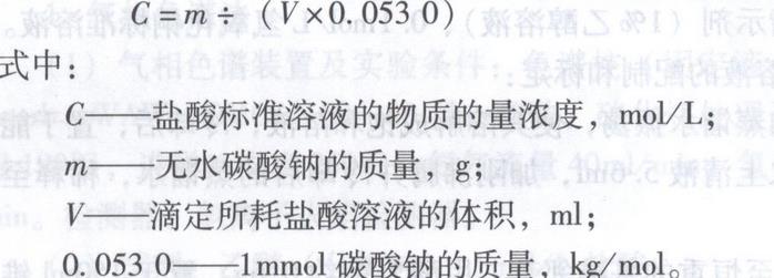 標(biāo)定:準(zhǔn)確稱取在270 -300℃干燥至恒重的基準(zhǔn)無水碳酸鈉約0.15g,置于150ml錐形瓶中,加蒸餾水50ml使其溶解,滴入混合指示劑10滴,用被標(biāo)定的鹽酸溶液滴定,至溶液由綠色變?yōu)樽霞t色時(shí),煮沸2min,冷卻至室溫,繼續(xù)滴定至溶液由綠色變?yōu)榘底仙珵榻K點(diǎn)。