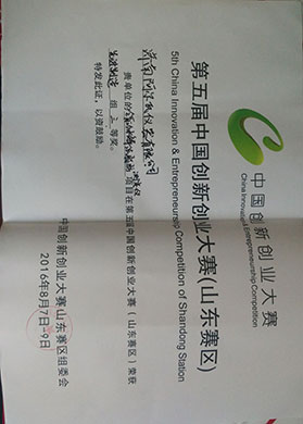 ![]() 第五屆創(chuàng)新創(chuàng)業(yè)大賽山東賽區(qū)三等獎 |